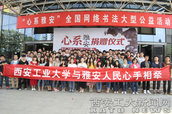 (本网讯)近日,在“心系雅安”全国网络书法大型公益活动捐赠仪式上,我校艺术与传媒学院院长于唯德代表获奖师生,将在本次活动中获得的奖金6万元全数捐赠,用于援建芦山县“陕西仓颉小学”。
