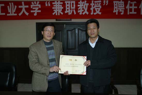 (本网讯)12月25号,我校在金花校区举行“兼职教授”聘任仪式,聘任西北兵工局党委书记、局长张世安为我校机电工程学院兼职教授。校长刘江南张世安局长颁发了聘任书。人事处、办公室、财务处、机电学院等部门领导出席了仪式。