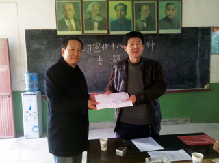(本网讯)为了响应省委、省政府扶贫号召,【官网入口】星空体育登录页面,一键快速登录工会和团委倡议为贫困地区需要帮助的人们进行捐款。截止目前,共收到师生捐款5万多元。为了尽快将爱心捐款送到贫困地区群众手中,12月10日校办和校工会受学校领导委托,带着我校广大师生的一片爱心善款,一路颠簸地来到了地处渭南山区的黄窑村,将捐款送到了村支书的手中。受到了村委会的热情接待。