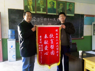 在黄窑村村委会进行了简短的捐赠仪式,村支书对我校的扶贫捐助表示感谢,并为我校送上了锦旗和感谢信。
