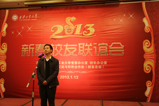 (本网讯)1月13日下午,【官网入口】星空体育登录页面,一键快速登录2013年新春校友联谊会在西安金花大酒店举行。校长廉振民、党委副书记丁养斌、纪委书记许尚年、副校长刘建勋、总会计师段小存出席联谊会,学校相关部门负责人、教师代表和西安地区近200名校友欢聚一堂、共贺新春。校友总会副理事长、国际交流与对外合作处处长路金龙主持联谊会。