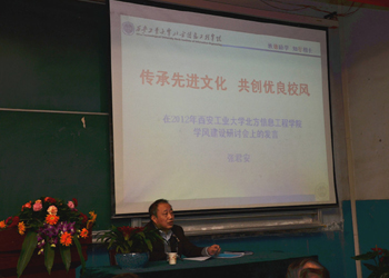 最后,张君安董事长作大会总结报告《传承先进文化,共创优良校风》。他充分肯定了本次研讨会的意义和作用,认为本次大会取得了一些突破性的成绩,参会人员风貌昂扬,大会主报告、师生发言质量高,选编的优秀论文有特色等。他还就北信学院近期工作进展情况向大会作了汇报,展望了北信学院美好的蓝图。此外,他还结合自己数年来的从教经历,谈了自己对学风和校风的几点认识,形象生动的描述了在学风建设中师生的角色定位及所应发挥的作用,阐述了学风建设工作的思路、标准和目标,并提出了多项指导意见。