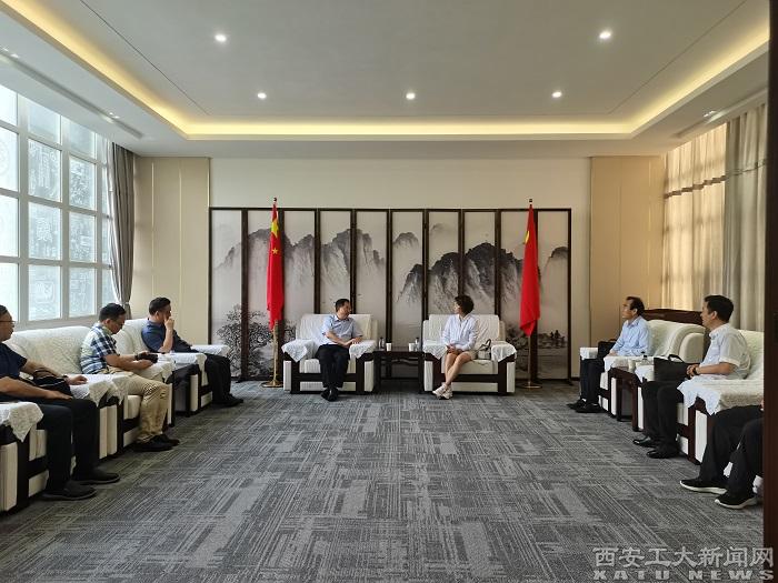 (本网讯)9月6日上午,西京学院校长任芳一行来我校调研交流。校长赵祥模在行政楼接待室会见了任芳一行,对任芳此次调研交流表示欢迎,并就科学研究、人才培养、实验室建设等方面进行了深入交流和探讨。