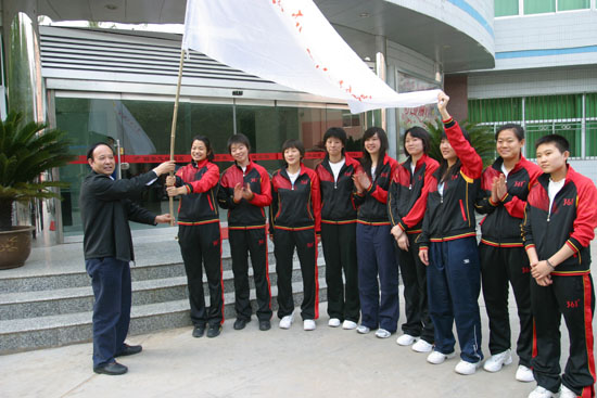 16日,学校隆重为女篮队员授旗、壮行,西安工大党委书记赛云秀希望女篮不骄不躁,再创佳绩。17日,队员们乘火车赴北京时,西安工大副校长张君安代表学校专程欢送。赴法参赛代表团团长、西安工大校长刘江南表示,球队将全力以赴,争取在本次大赛中获得好成绩,为国争光。