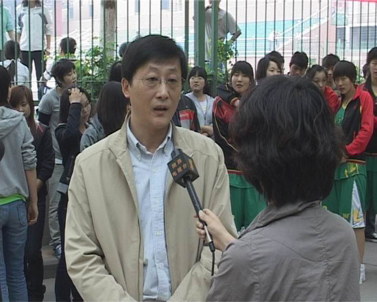 女篮队出征前,校长刘江南接受陕西省电视台采访