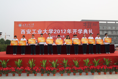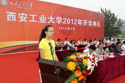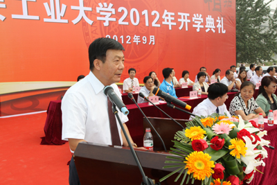 开学典礼上,学生处处长任慧英介绍2012年招生情况并宣读新生国亮奖学金获奖名单。在主席台前排就座的学校党政领导和嘉宾为获奖学生颁奖。