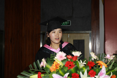 经济管理学院苏兵教授作为教师代表发言。她代表学校全体教师对毕业生表示衷心的祝贺,向同学们诚恳地提出两条建议:一是不断学习,持续发展;二要学会做人,学会做事。图书馆代表惠祥发言,他说:“欢迎同学们毕业后,抽空回到母校,回到图书馆,站在曾经渴望知识的书架前,坐到那个曾经奋斗过的桌前,体会你曾经努力过、拼搏过、奋斗过的快乐!”。人文学院2012届毕业生王丹同学代表全体毕业生发言。表示同学们将永远不会忘记在西安工大学到的点点滴滴,永远不会忘记在迷茫彷徨时老师的悉心指点。2012届的全体学子每分每秒都将见证西安工大点滴的变化,祝愿母校再谱华章,再铸辉煌!