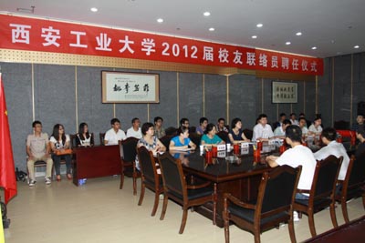 6月29日上午,2012届校友联络员聘任仪式在未央校区举行。国际交流与对外合作处处长、校友联谊总会副理事长路金龙,团委书记赵琼,经济管理学院党委书记曲敏,材料与化工学院党委书记赵玉厚,学生处副处长姬洪波,光电工程学院党委副书记陈彤,建筑工程学院办公室主任曾志英以及受聘的2012届校友联络员代表参加了聘任仪式。