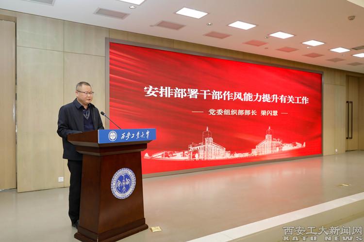 党委组织部部长梁闪慧结合学校开展干部作风能力提升年活动的有关方案,从总体要求、工作目标、重点任务及分工、组织保障等方面对学校干部作风能力提升有关工作进行了安排部署,并强调要严格落实领导责任,深入开展调查研究,不断加强宣传引导,从严督导检查,使作风硬、本领强成为干部的鲜明标识,为奋进中国式现代化新征程、谱写学校高质量发展新篇章提供坚强保障。