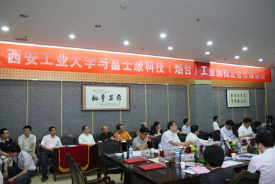 (本网讯)5月18日,富士康科技集团(烟台)工业园副总经理郑光杰、夏克平经理、陈锡聪经理、游丰檀副经理、王金清专案经理、唐德川课长等一行9人来校,就卓越工程师计划、专班人才培养、在职人员培训、电子商务等方面与我校进行深入研讨。学校教务处、学生处、工程训练中心、各学院、研究生部、以及北信学院、高职学院等部门负责人出席了会议。