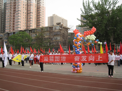 上午7:30,伴随着激昂的运动员进行曲大会正式开始,各代表队精神饱满、口号嘹亮、步伐整齐进入运动场。运动员代表、裁判员代表分别宣誓,随后进行的陕北腰鼓、双节棍、健美操、啦啦操等文体表演,充分展示了当代大学生活力四射、青春无限的崭新面貌,赢得了大家的阵阵掌声。