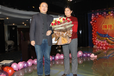 文艺汇演的第三个阶段,充满了温馨感人的场面。在学工部部长任慧英深情的祝福声中,光电学院学生代表为即将离开工作岗位的光电学院党委书记李正玉送上了美丽的鲜花,张君安副校长将精美的礼物送到了李正玉的手中,并表达了衷心的谢意。李老师表示:这温馨的场景和美好的祝福让她非常感动,终生难忘。在《掌声响起来》的歌声中,许多学院的书记们走上舞台,与李老师拥抱合影,和谐美好的气氛感染着在场的每一个人,充满家的温暖、爱的温馨。