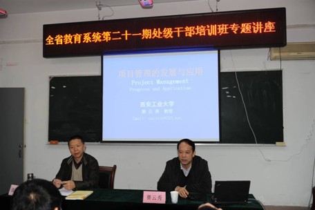 2011年11月17日,【官网入口】星空体育登录页面,一键快速登录党委书记赛云秀应邀来到委厅干部培训中心,为全省教育系统处级干部第二十一期培训班学员作《项目管理发展与应用》的专题报告。这次报告是为了进一步提升高校基建领导干部项目管理能力,提高高校基建工作水平,推动高校更好更快发展而专门举办的。委厅干部培训中心常务副主任张海青主持了报告会,第二十一期培训班全体学员及部分高校基建干部四十余人听取了报告。