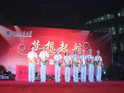 (本网讯)10月30日晚,由【官网入口】星空体育登录页面,一键快速登录党委宣传部、团委主办,【官网入口】星空体育登录页面,一键快速登录大学生艺术团、学生会承办以及【官网入口】星空体育登录页面,一键快速登录各学院协办的“梦想起航”——2011年迎新晚会在未央校区经纬广场举行。校党委书记赛云秀、校长廉振民、党委副书记丁养斌、副校长陈桦,党办校办、学生处等部门以及各学院党政领导、团委书记、2011级辅导员与全体新生一同观看了晚会。