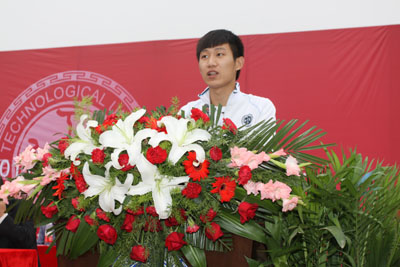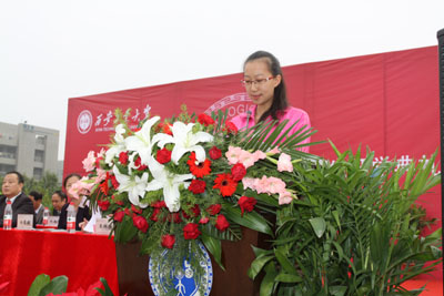 机电学院2010级研究生侯健同学作为高年级学生代表发言,她用24个字为学弟学妹们讲出了自己的经验之谈,明确目标,博采众长;学以致用,善于创新;提高素质,接受挑战。