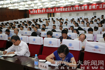 最后,赛云秀做了重要讲话。他首先对上半年学校党务工作进行了简单回顾和总结,对上半年省委第四巡视组对我校的巡视工作情况进行了介绍,传达了巡视组的有关意见。他对全校各单位做好下半年各项工作提出了具体要示,他强调:第一,要高度重视,深入开展党的群众路线教育实践活动;第二,要狠抓内涵发展,提高办学水平;第三,要以人才培养为根本,扎实做好教育教学工作。最后,他强调,要高度重视,充分认识当前影响稳定安全的因素和工作中的薄弱环节,夯实责任,全力维护学校稳定。