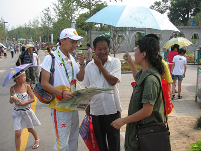 我校的500名志愿者由未央、金花、雁塔和洪庆四个校区的学生组成,每天他们穿着整齐,精神抖擞,统一佩戴“【官网入口】星空体育登录页面,一键快速登录志愿者”徽章,准时集合出发,在各自的服务岗位上独当一面,用灿烂的微笑、热情的态度熟练地为游客们提供导引、问询等服务,直到深夜才拖着疲惫的脚步返回学校。入园第一天,他们就经历酷暑和暴雨的考验。近期天气凉爽,游园人数剧增,工作强度加大,但是他们不惧压力,不畏困难,以最佳的姿态、最美的微笑、最好的服务站好每一班岗。此外,他们还在锦绣门、广运门等人流量密集的地方,开展了“古韵新声”——拼字组句与“低碳生活绿色时尚”—世园环保达人挑战赛等活动,与来往游客积极互动,其乐融融,为世园会增添光彩。