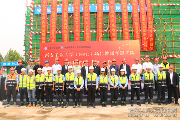 党办、校办、国资处、总务处及项目建设单位、监理公司、设计勘察单位有关负责人与100余名项目建设者共同见证教师实训基地封顶。