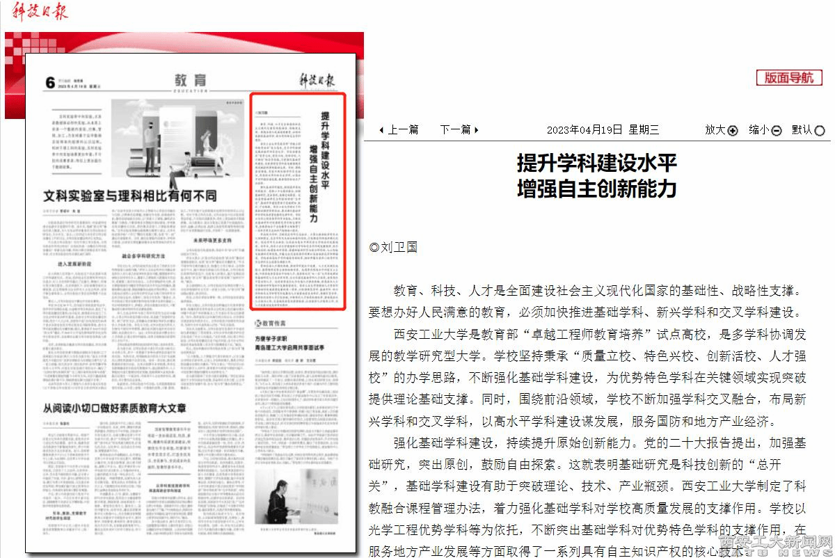 (本网讯)4月19日,《科技日报》刊发党委书记刘卫国署名文章《提升学科建设水平 增强自主创新能力》。文章写道:【官网入口】星空体育登录页面,一键快速登录是教育部“卓越工程师教育培养”试点高校,是多学科协调发展的教学研究型大学。近年来,学校以优势特色学科、基础学科、新兴学科和交叉学科等学科发展对人才的紧迫需求为牵引,坚持引育并举,持续优化创新人才引进机制,不断深化人才培养机制改革,推动高层次人才接力工程,完善相关政策及服务配套,扎实做好人才服务工作,为人才发展创造良好有利条件。