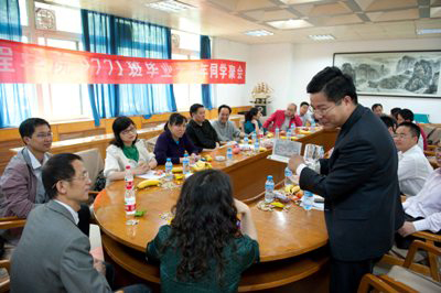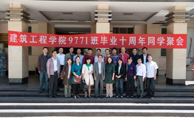 当天上午,建工学院在金花校区会议室组织召开了9771班校友与教师代表座谈会。建工学院党总支书记雷晓青、院长顾致平、副院长赵敏、校友们当年的班主任、任课教师以及回校的全体校友参加了座谈会。首先,雷晓青书记代表学院欢迎校友返校,顾致平院长介绍了学校和学院的发展近况,特别是近几年的跨越式发展,包括办学规模、人才培养、学科建设、教学质量等。校友们一一向母校的领导、老师汇报自己毕业10年来的工作、学习、生活情况,感谢母校和恩师的培养,并为建工学院赠送了礼物。随后,当年的任课教师先后发言,从不同角度回忆了与同学们朝夕相处的难忘日子,希望大家常回母校看看,并祝福各位校友工作顺利。座谈会后全体校友参观了他们生活过的金花校区并在金花校区行政楼前合影留念。