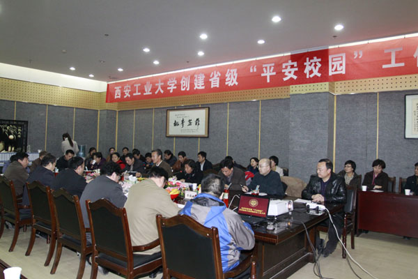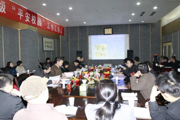 党委书记赛云秀代表学校从工作部署、取得的成效以及存在的问题和不足三个方面向检查组作了专题汇报。早在2008年,我校就将“平安校园”创建列入工作计划,并作了文档归类等前期准备工作。2009年4月正式启动该项工作,2010年10月向陕西省综合治理委员会学校周边综合治理领导小组办公室递交了验收申请。近3年来,学校召开相关会议20余次,下拨专款45万元,并与有关政府部门紧密联系,共建安全保障机制。这些举措使我校的省级“平安校园”创建工作取得了实实在在的效果。
