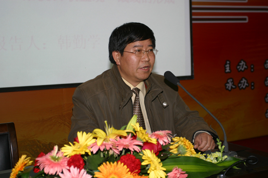 当日下午,秦岭石羊关革命老区游击文化基地研究员、总经理、陕西师范大学国家思想政治教育第二届学员委员韩勤学教授来校做“抗日图存,志同爱国——三秦抗日统一战线的形成”讲座。讲座内容以秦岭石羊关革命老区为主,介绍了发生在秦川大地的抗日英雄事迹,缅怀那些为革命英勇献身的烈士,弘扬先烈们的爱国主义精神。韩教授还谈到了作为一名大学生该如何去做人,激励当代青年树立爱国之心,立报国之志,并且用自己的亲身经历告诉学生们如何才能实现自己的人生价值。