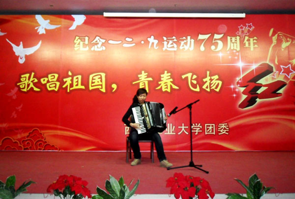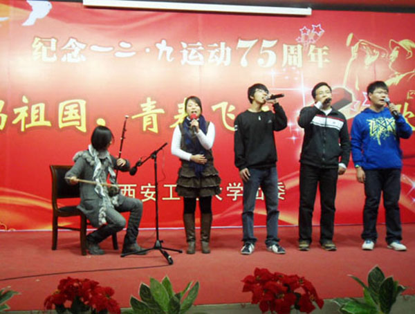 (本网讯)12月8日晚,【官网入口】星空体育登录页面,一键快速登录团委在未央校区举办纪念“一二·九运动”75周年——“歌唱祖国 青春飞扬”红歌会。之前,校团委宣传部对来自不同院系、不同年级的30余个报名的曲目,进行了初审、复审等环节,最终挑选了14个优秀的表演团队及个人登台演唱。