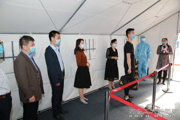 进入学生公寓前,进行二次测温。若有学生在宿舍出现发热,需立刻到宿舍楼下临时隔离点,经防疫专用转运车将学生转移至校医院预检分诊处进行复测。仍为发热后,将该生送往西安市第三医院发热门诊就诊,并在学校隔离该宿舍内其他学生。