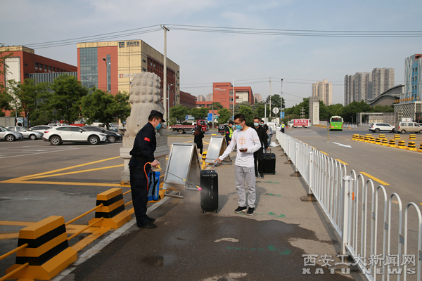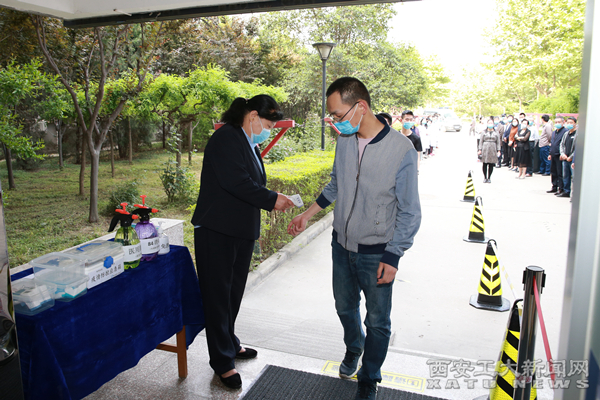 在西门口,每位同学佩戴口罩,手持相关证件及手机健康码,保持一米间距,按顺序排队进校,并依次进入红外热成像测温舱。体温异常的学生,需经专用通道,到达临时隔离点,进行复测。若为不明原因的发热症状,立刻转至发热门诊,并将情况如实上报。