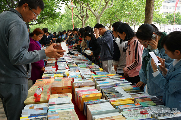 图书馆联合汉唐书城开展“共读西工好书香”你选书我买单现场荐书活动,读者现场选书、馆员现场加工,读者当场就可以把书带回家。活动一开始,就被读者围得水泄不通,大家交口称赞,有的同学甚至愿意为此排队1个多小时。另外今年图书馆为广大师生共请来7位数据库商,进行现场推广,活动现场火爆,甚至引来了国外友人的关注。