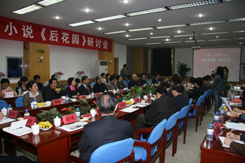 西安工大人文学院院长、陈忠实当代文学研究中心常务副主任、青年评论家冯希哲最后做总结发言。他首先介绍了本校地域文学与文化方向近两年取得的学术成果,然后提出自己的意见,认为《后花园》是继“陕军东征”后,最有实力的作品之一,也是近两年陕西作家群创作佳作叠出,在“井喷”现象中,最能代表陕西作家群创作实力和探索成果的一部具有研究价值和阅读意义的优秀作品。他还从《后花园》文本所呈现出的多层隐喻阐释切入,认为这部作品所呈现的话语姿态,为新时期以来知识分子叙事文本富有有个性和咀嚼性的东西,是个新动向,应当引起评论界的关注。作品没有着力去追求人物形象的典型化、矛盾发展的复杂化和叙事的严密逻辑性,而以诙谐幽默的言语方式通过宋隐乔的“寻梦”,营造出交错复杂的时空来结构一个非主流价值主导,其中隐涵着丰富喻指性的意义世界。男主人公宋隐乔在偶然中的带有传奇色彩的经历与感受、心态,并不完全是为了情节需要,他撕下了道德袈裟,用自诉与自为的行为反叛了新时期以来知识分子形象要么崇高要么被压抑要么变异的传统,还原了知识分子人性的本来面目和内质结构,喻示出浮世中以宋隐乔为代表的青年知识分子精英在传统与现代、现代与后现代文化嬗变中,人性的放逐与守成、精神的迷失与眷念、道德的失范与重建的矛盾性与复杂性,这恰恰是当下的青年知识分子所面临的群体性文化心态具有共适性的迷惘症所在。同时作者智慧机巧地运用似乎错乱的时空背景来揭示造成如此尴尬背后的政治、经济、文化等诸多方面的潜在因素。虽然作者潜意识想塑造一位水一样美,集古典与现代、高雅与朴素等美德于一身,美仑美奂的女性罗云衣,但其理想化指向并未能代替楚朝亭在太阳下晾晒心理的隐痛,用灵魂“追赶太阳”的暗喻性。文本中的“后花园”岂止是自然中的“后花园”,更是价值冲突中人类精神失落寻寻觅觅当中的“灵魂后花园”。他最后强调,如果用传统的接受眼光和心态把握这部作品,不深入到文本的内在意义世界,无形中会使《后花园》的价值本体受损,更难以接近文本最隐秘的真实意图。