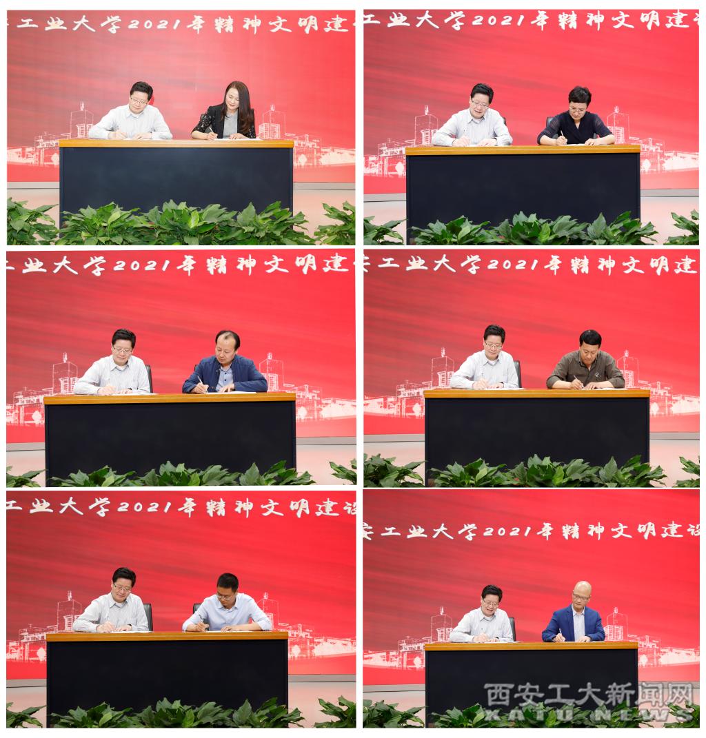 刘卫国与教务处、党委学生工作部(学生处、学生心理发展指导中心)、总务处(后勤服务集团、基建处)、文学院、计算机科学与工程学院、马克思主义学院等单位的主要负责人分别签订了《【官网入口】星空体育登录页面,一键快速登录2021年精神文明建设任务书》。
