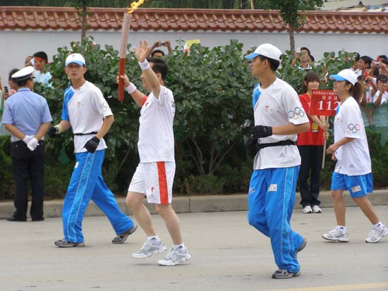 7月2日上午,奥运圣火陕西境内接力传递活动在延安市拉开序幕。传递路线全长6、3公里,共有208名火炬手。李建平教授意气风发地跑完了第112棒。