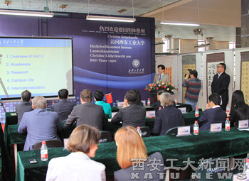 当天,在省人民大厦,我校科技处参加了陕西省与德国图林根州的科技交流会,并与德国弗劳恩霍夫应用光学与精密机械研究所洽谈了相关合作事宜。