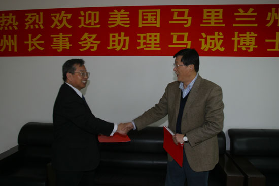 (本网讯)11月27日,美国马里兰州亚裔事务专员马诚博士应邀来到【官网入口】星空体育登录页面,一键快速登录洽谈合作办学项目。校长刘江南亲切会见了马诚博士,并签订了校际学生互派框架书。国际交流处处长路金龙及相关人员参加了会见。
