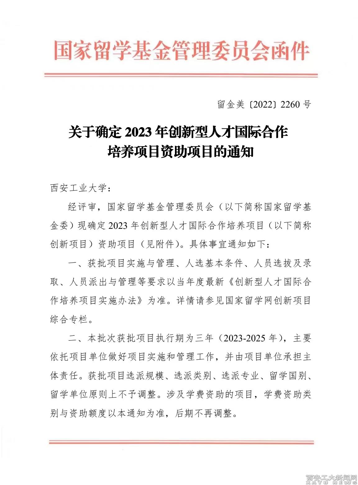 (本网讯)近日,国家留学基金委于公布了2023年创新型人才国际合作培养项目立项名单。我校刘卫国教授主持申报的“光学制造与检测创新型人才国际合作培养项目”成功获批。