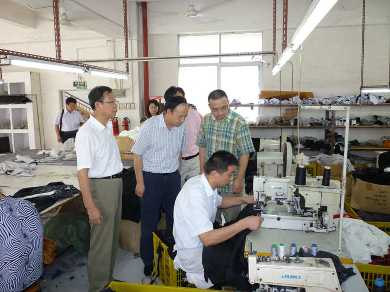 紧接着,赛书记一行又马不停蹄地赶到劳动密集型企业--服装制造厂参观考察。首先听取了厂长对成衣设计、制作、工厂概况和运行情况的介绍,随后参观了服装厂的技术室和制衣车间,服装厂使用CAD技术,在很短的时间内就可完成打板的工作,当时看到输出仪在输出样板,清晰明快。使大家充分了解到服装制作的整体流程,同时对现今的劳动密集型企业的经营管理模式有了新的认识。