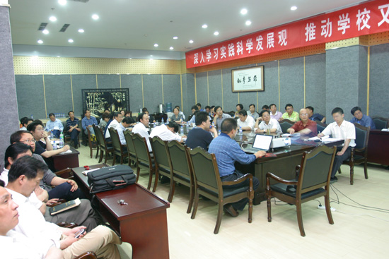 会议上,杨灏、李有良、董晟全、李正玉、张忠、曲敏、王辉强等七位同志分别代表各小组作了情况汇报。杨灏等同志在汇报中首先谈了各小组在解放思想大讨论中的心得体会,其次就学科建设、教学质量、队伍建设、人才培养、科技创新、党政管理、后勤服务等学校工作中存在的反映比较集中的问题及其改进思路做了说明。