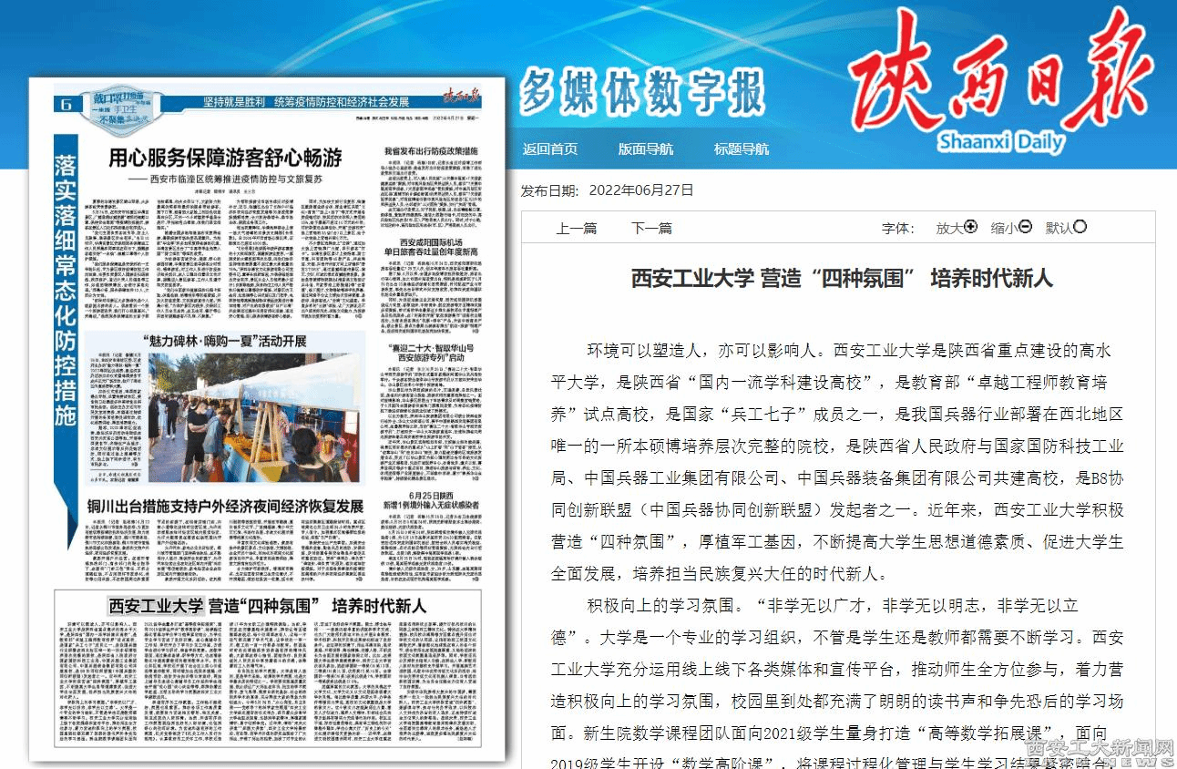 (本网讯)6月27日,《陕西日报》刊登校长赵祥模《【官网入口】星空体育登录页面,一键快速登录营造“四种氛围” 培养时代新人》署名文章。