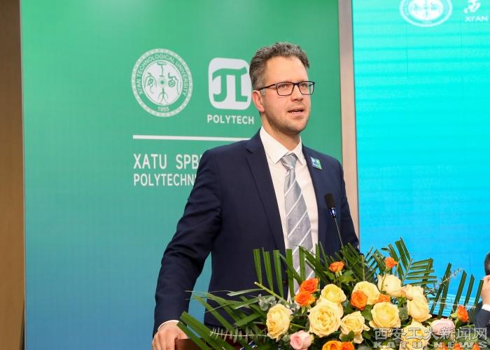 安德烈·鲁德斯科伊发表致辞。他指出,两校自2019年师生互访开始到如今合作办学机构成立,已经建立了深厚的友谊和良好的合作关系,相信未来两校将在更多更深领域展开合作。他表示,两校强强联合,为学生选派最优师资,学生们将体验独一无二的中俄教育,相信更多学生们将成长为受中俄两国欢迎的高级专业人才。