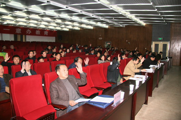 最后,大会通过了决议,号召全校教职工在党委领导下,顾全大局,爱岗敬业,牢固树立节俭办学意识,以良好的教学、管理、服务质量,确保学校实现内涵发展,不断提高学校的办学水平。党委书记赛云秀在会上作了讲话,他代表党委要求全体代表要深刻认识学校开展岗位设置工作与节能减排工作的长远与现实意义,增强节俭意识,深入开展节能减排工作,保障学校全面、协调、可持续发展。他要求要切实做好岗位设置和节能减排工作,以良好的工作成绩向全校教职工交出满意的答卷。