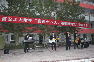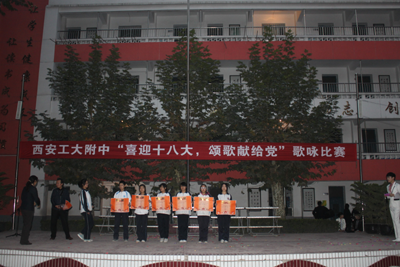 参赛的16支班级代表队,满怀豪情,纵情歌唱,用歌声诠释对党的敬意和对伟大祖国的祝福。比赛以一首高亢激昂的《歌唱祖国》拉开序幕,《明天会更好》、《走进新时代》、《中国军魂》、《我的祖国》、《我和我的祖国》等经典歌曲成为各代表队的首选。嘹亮的歌声,熟悉的旋律,引起台上台下的共鸣,深深感染了在场观众,兄弟学校西安市第三中学学生摇滚乐队的友情演出,更是将比赛现场推向高潮。最终初一二班、高一二班等获得了比赛的一等奖。