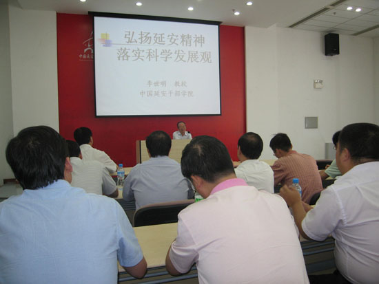 学习培训期间,全体人员还听取了中国延安干部学院教授李世明做的“弘扬延安 精神,落实科学发展观”的专题 辅导报告,观看了“延安保卫战”的实战演练场景,使大家对延安精神有了更进一步的理解。