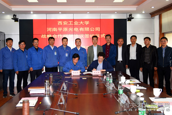 (本网讯)4月8日,党委书记刘卫国、副校长任海鹏一行赴中国兵器工业集团光电集团河南平原光电有限公司进行调研并看望我校校友。光电集团副总经理、平原光电执行董事、党委书记郭海星,平原光电总经理、党委副书记张亚东等公司领导热情接待了刘卫国一行。