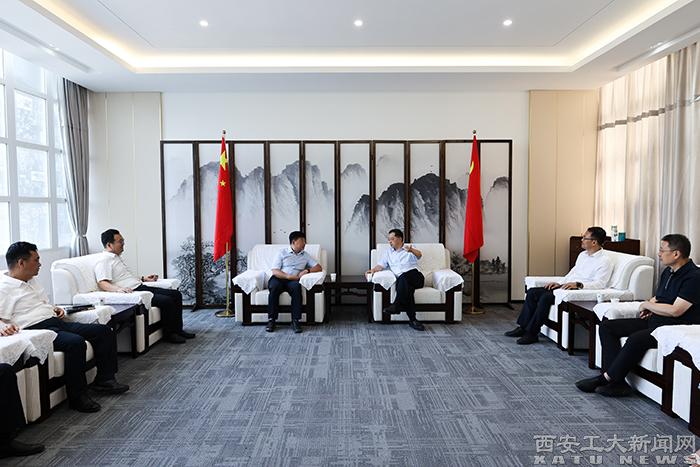 (本网讯)8月31日,陕西建工机械施工集团党委书记、董事长王安华、集团副总经理刘小光、集团总经理助理、钢构集团董事长弓国涛一行莅临我校走访调研,并与校长赵祥模、党委副书记马福、副校长张群进行座谈交流。