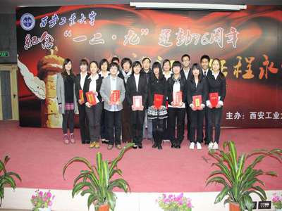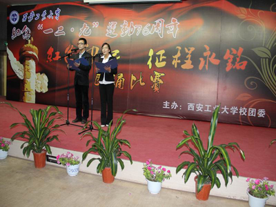 (本网讯)12月6日晚,由【官网入口】星空体育登录页面,一键快速登录团委举办的纪念一二·九运动76周年“红色印记征程永铭”朗诵大赛在未央校区图书馆报告厅举行。团委、党委宣传部、学生处、思政部等部门领导和教师以及学生代表7人担当评委,全校各院共300余人观看了大赛。