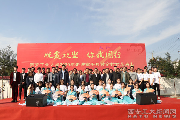 17日下午,校团委带领100余名西安工大艺术团学生来到黄窑村,为村民奉献了一场主题为“脱贫攻坚你我同行”文艺演出。大学生艺术团的同学们和黄窑村喜洋洋幼儿园的孩子们表演了舞蹈、诗朗诵、合唱等节目,精彩纷呈的演出得到村民的喜爱和称赞。