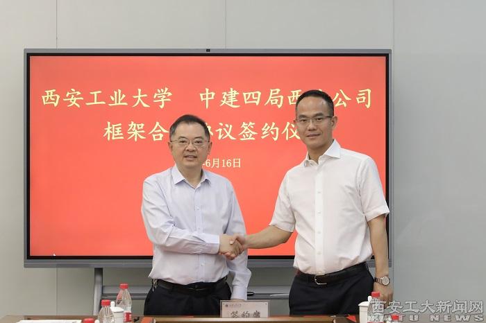 (本网讯)6月16日,中建四局西北公司董事长伍山雄、总经理梁二雷一行莅临我校开展交流访问并签署战略合作框架协议,校长赵祥模、校党委副书记马福出席座谈会,会议由马福主持。