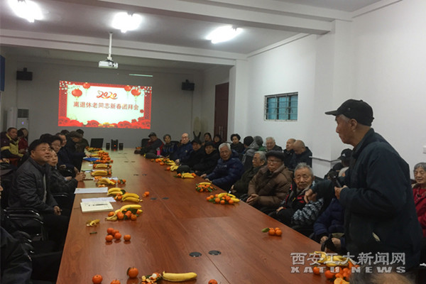 雷亚萍代表学校致以新年的问候和祝福,从电梯加装、节日慰问等方面做了具体安排,表示学校将一如既往地关心关爱离退休老同志。