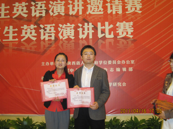此次比赛共分为英语专业和非英语专业两组进行,我校每组各选一名研究生参加了比赛。最终,由外国语言系教师王蕙指导的外国语言学及应用语言学专业2010级研究生黎畅获英语专业组三等奖;由外国语言系教师张华指导的思政部2010级研究生闫申获非英语专业组优秀奖。